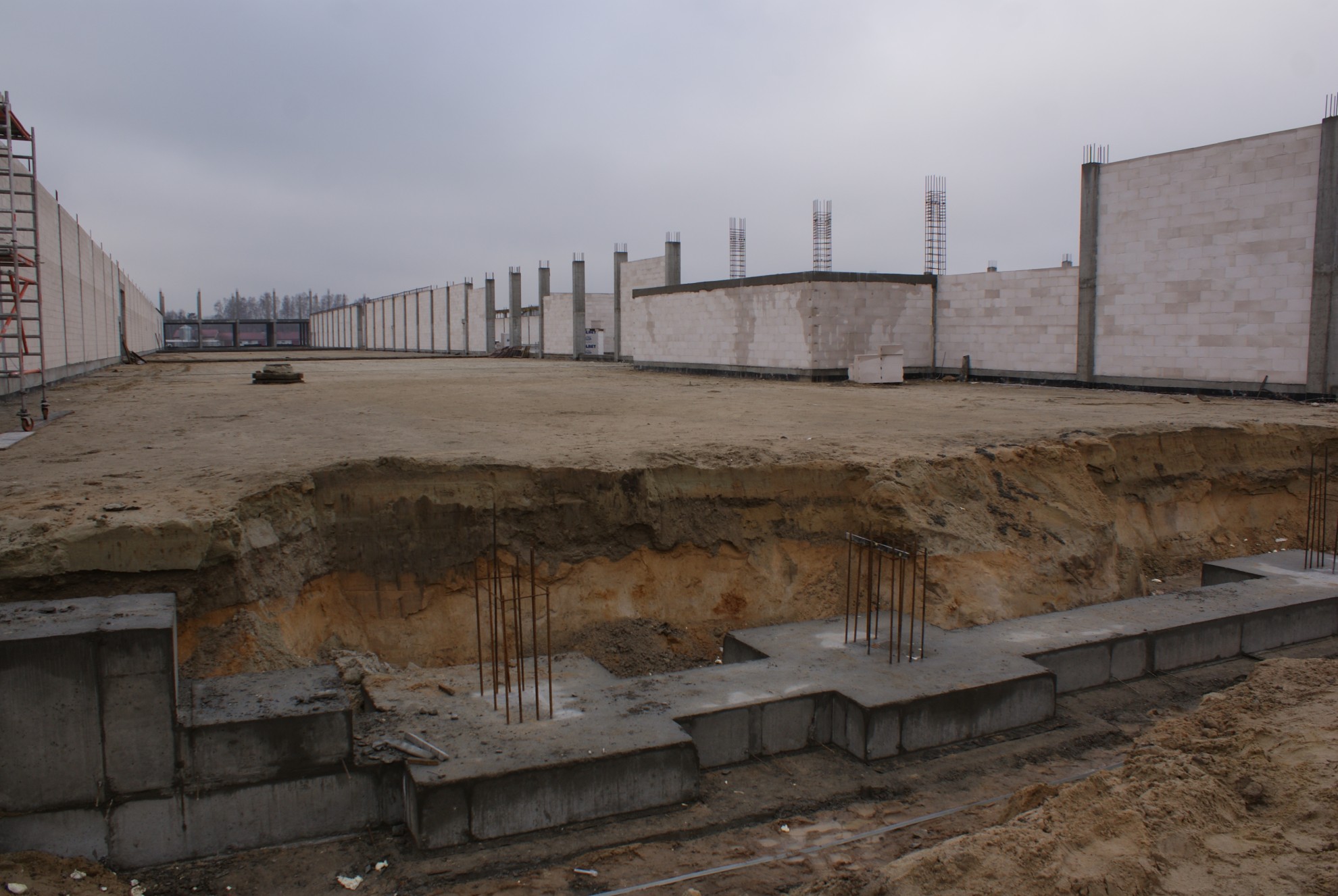 - Wykonanie prac ziemnych, fundamentowych, żelbetowych, murowych pow. 1700m2.